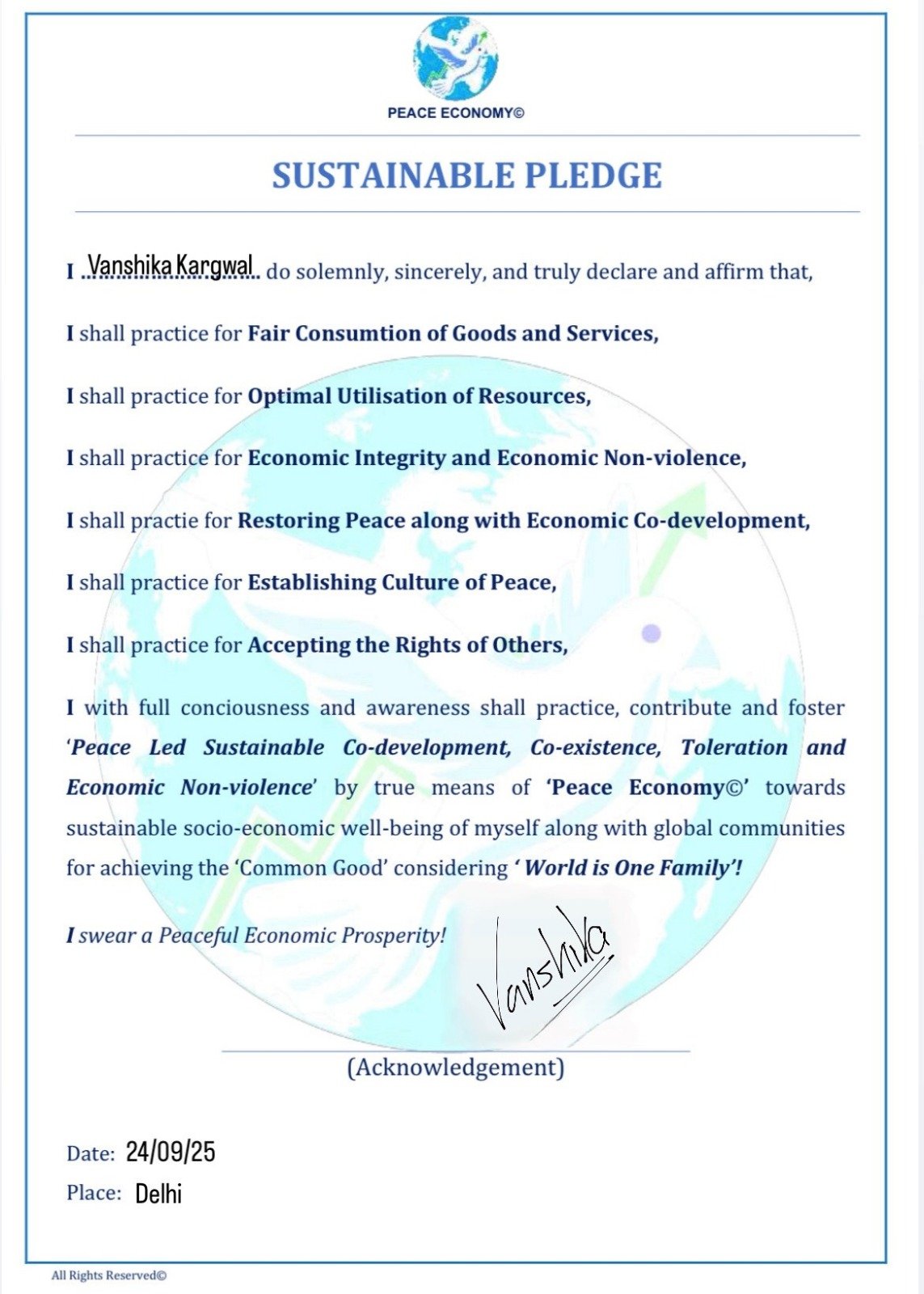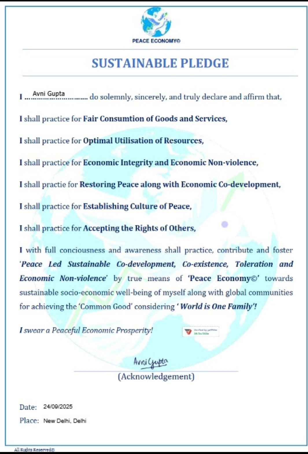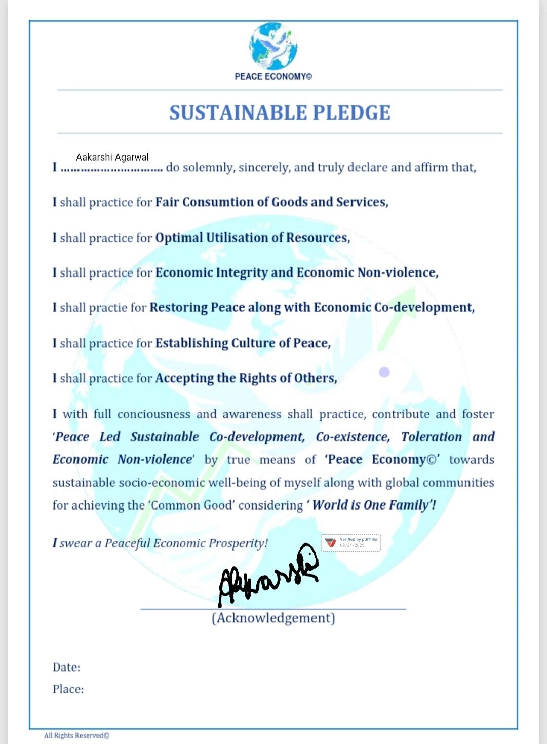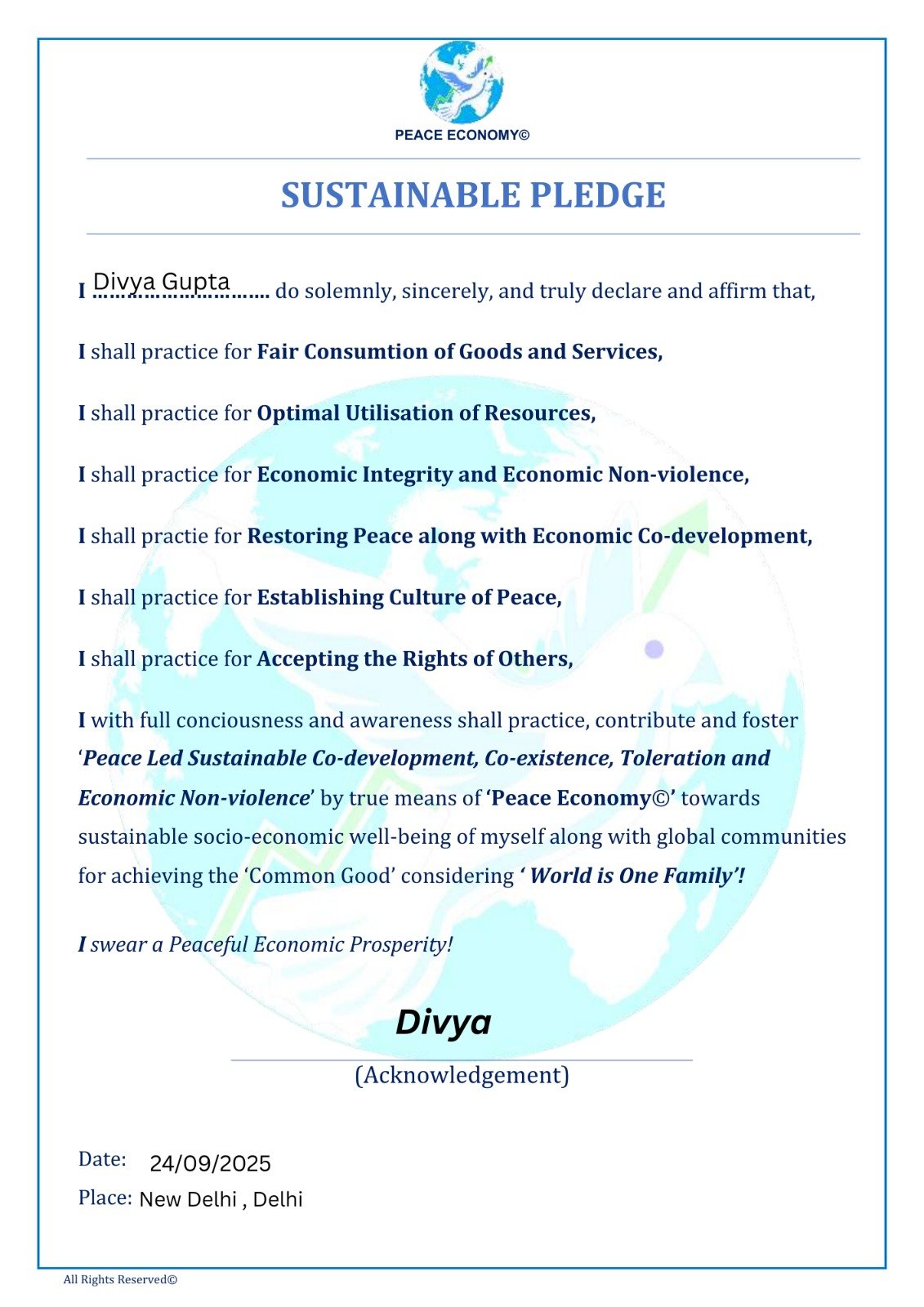 Dr. Agrawal is solely and globally authorized, exclusively mandated and reserves an ‘Intellectual Property Rights’ (IPR) for a niche initiative and ideation of ‘Peace Economy’.