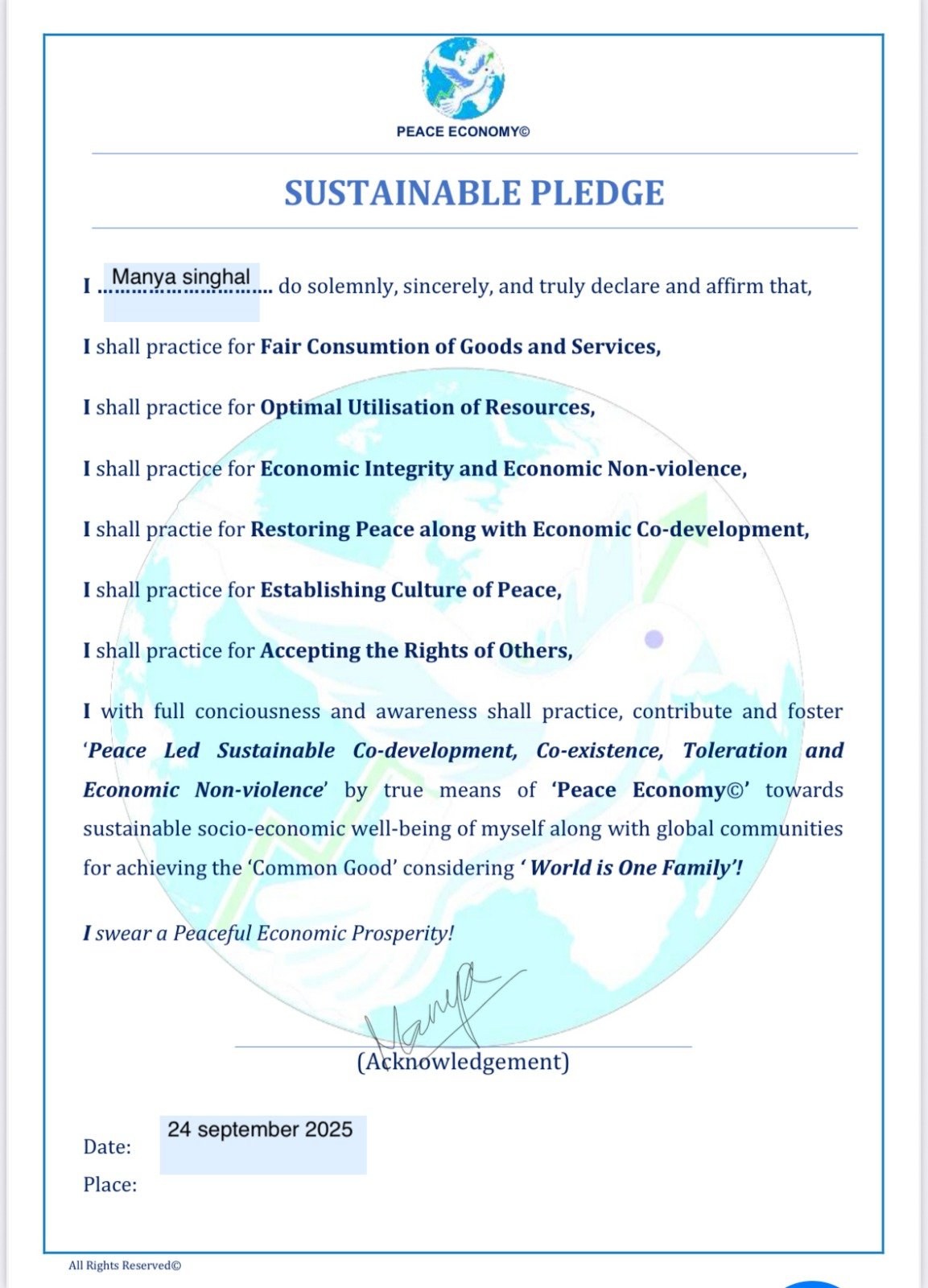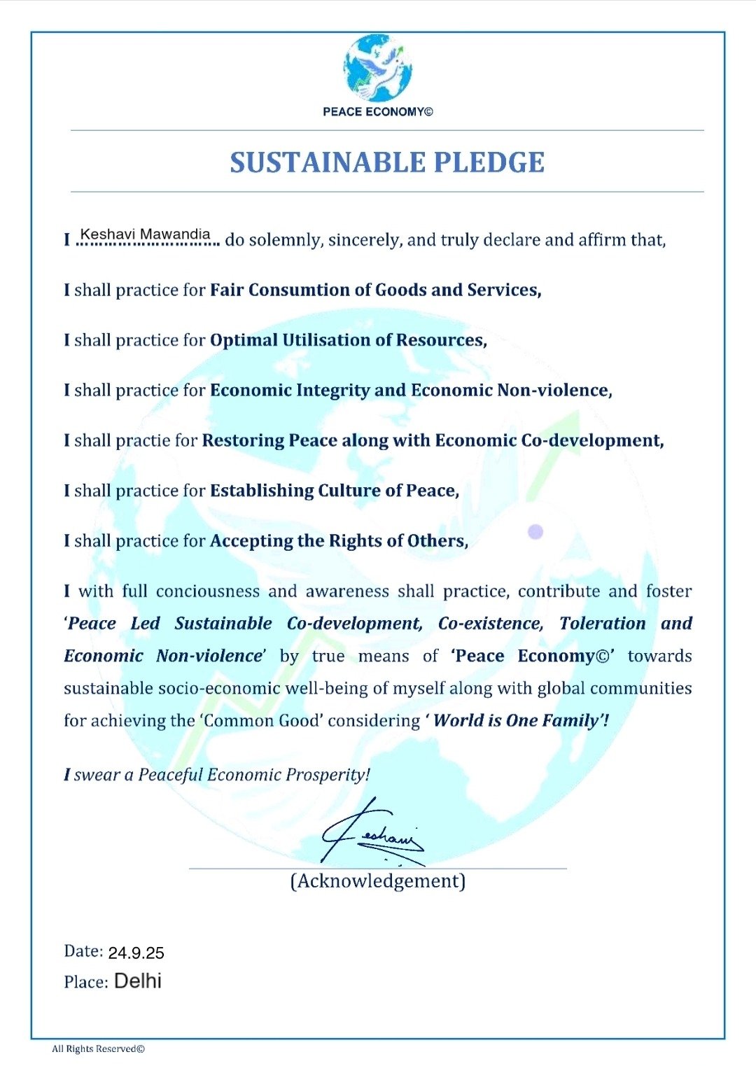 Peace Economy aims at ‘universal up-liftment’ considering ‘World is One Family’!