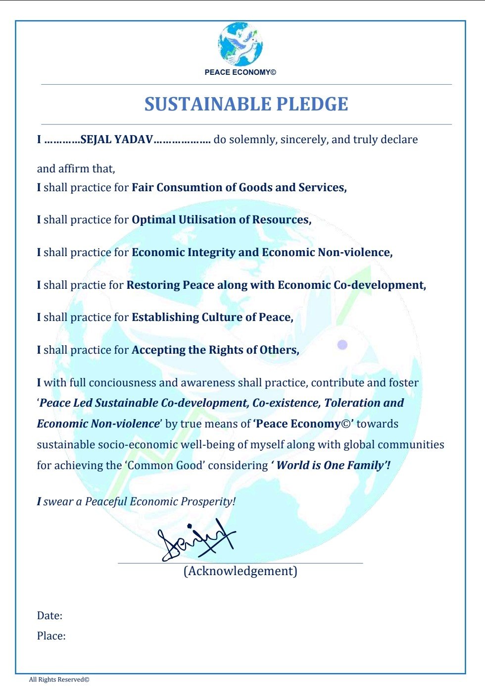 ‘Peace Led Economic Co-Development, Co-existence, Toleration and Non-violence’ contributes to rapid national economic growth by virtue of increasing FDI, Tourism, Industrialisation, Infrastructure Development, Feasible Working Environment, Health Conditions, Valued Education, Increasing Productivity and Labour towards achieving in Economic Discipline, Accountability, and Trusteeship.
